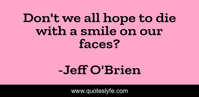 This page presents the quote "Don't we all hope to die with a smile on our faces?". Author of this quote is Jeff O'Brien. This quote is about irony, death, dying, humor-irony-death-zombie,.