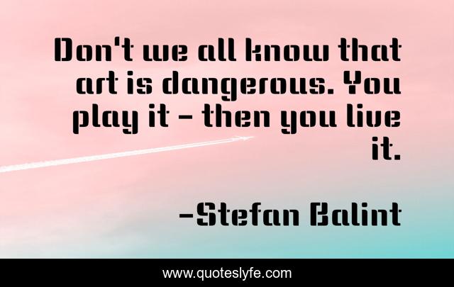 This page presents the quote "Don't we all know that art is dangerous. You play it - then you live it.". Author of this quote is Stefan Balint. This quote is about photography, art,.