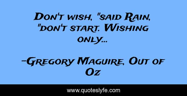 "Gregory Maguire, Out of Oz Quotes." Quoteslyfe.com, 2025. Tue. 09 Dec. 2025. <https://www.quoteslyfe.com/quote/Don-t-wish-said-Rain-don-t-234568>.