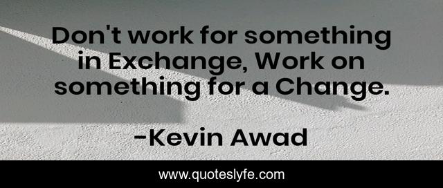 This page presents the quote "Don't work for something in Exchange, Work on something for a Change.". Author of this quote is Kevin Awad. This quote is about life, philosophy, love, knowledge, business, inspriational, joy, work, experience,.