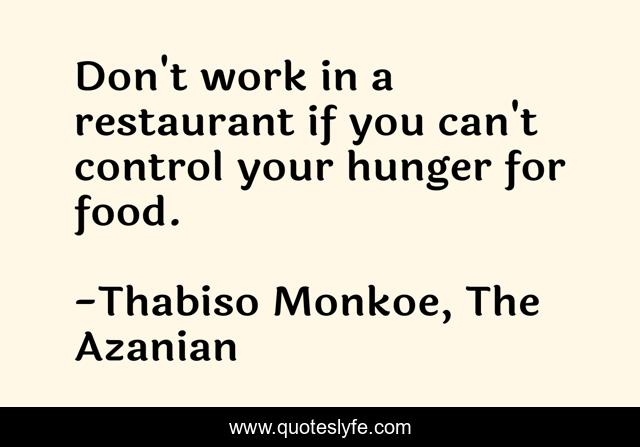 This page presents the quote "Don't work in a restaurant if you can't control your hunger for food.". Author of this quote is Thabiso Monkoe, The Azanian. .