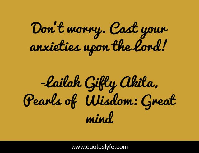 "Lailah Gifty Akita, Pearls of Wisdom: Great mind Quotes." Quoteslyfe.com, 2025. Sun. 07 Dec. 2025. <https://www.quoteslyfe.com/quote/Don-t-worry-Cast-your-anxieties-upon-130431>.