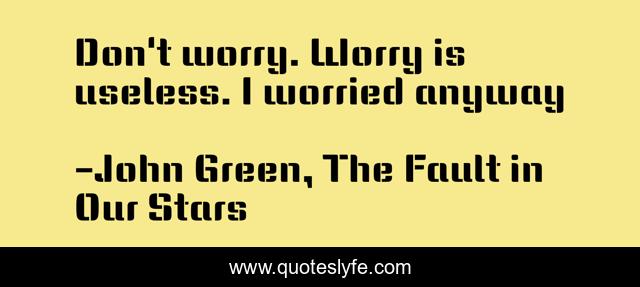 "John Green, The Fault in Our Stars Quotes." Quoteslyfe.com, 2025. Fri. 05 Dec. 2025. <https://www.quoteslyfe.com/quote/Don-t-worry-Worry-is-useless-I-137682>.