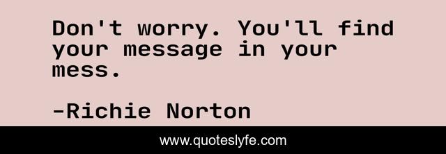 This page presents the quote "Don't worry. You'll find your message in your mess.". Author of this quote is Richie Norton. This quote is about public-speaking, organized, mission, in, message, your, worry, speak, don-t-worry-be-happy,.