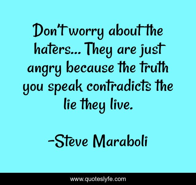 This page presents the quote "Don’t worry about the haters… They are just angry because the truth you speak contradicts the lie they live.". Author of this quote is Steve Maraboli. This quote is about lie, angry, haters, truth,.
