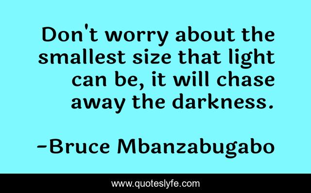 This page presents the quote "Don't worry about the smallest size that light can be, it will chase away the darkness.". Author of this quote is Bruce Mbanzabugabo. This quote is about enthusiasm, wise, inspirational, light-and-darkness,.