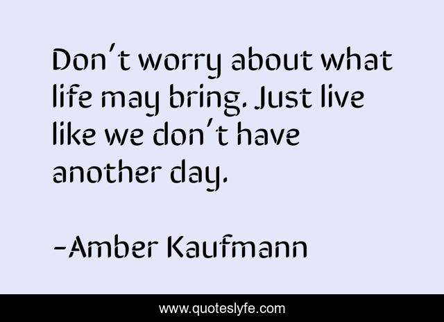 This page presents the quote "Don’t worry about what life may bring. Just live like we don’t have another day.". Author of this quote is Amber Kaufmann. This quote is about quotes-to-live-by, inspirational, enthusiasm,.