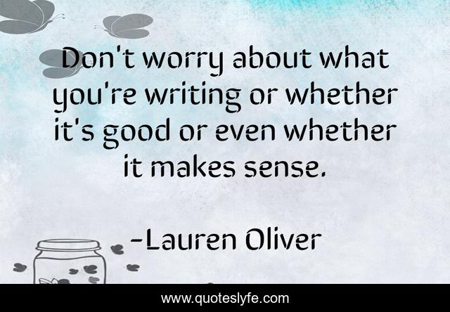 This page presents the quote "Don't worry about what you're writing or whether it's good or even whether it makes sense.". Author of this quote is Lauren Oliver. This quote is about writing-process, nanowrimo,.