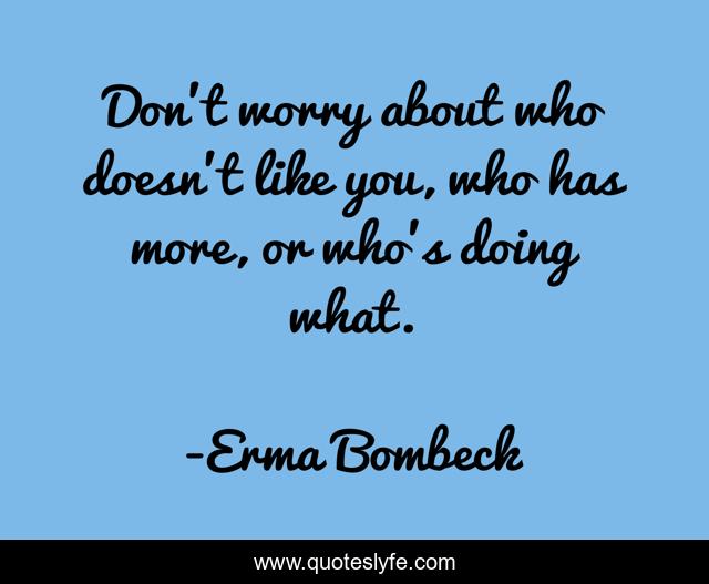 This page presents the quote "Don't worry about who doesn't like you, who has more, or who's doing what.". Author of this quote is Erma Bombeck. .