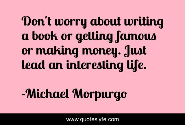 This page presents the quote "Don't worry about writing a book or getting famous or making money. Just lead an interesting life.". Author of this quote is Michael Morpurgo. This quote is about money, life, writing,.