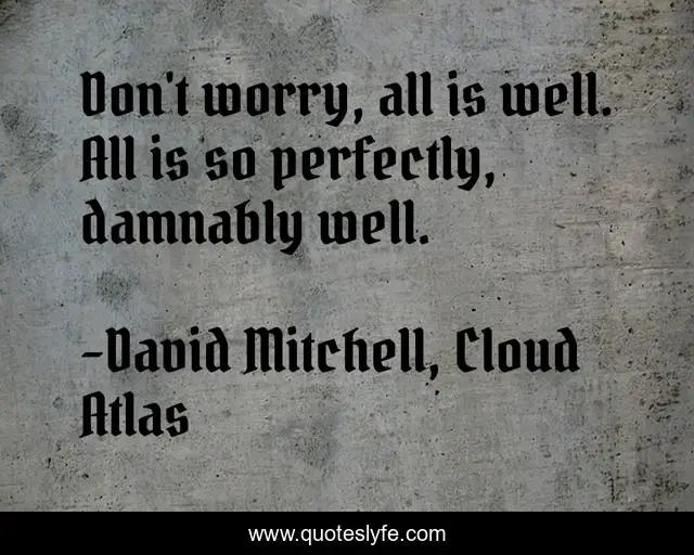 "David Mitchell, Cloud Atlas Quotes." Quoteslyfe.com, 2025. Mon. 08 Dec. 2025. <https://www.quoteslyfe.com/quote/Don-t-worry-all-is-well-All-159885>.