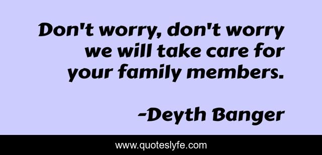 This page presents the quote "Don't worry, don't worry we will take care for your family members.". Author of this quote is Deyth Banger. This quote is about family, take, members, care,.