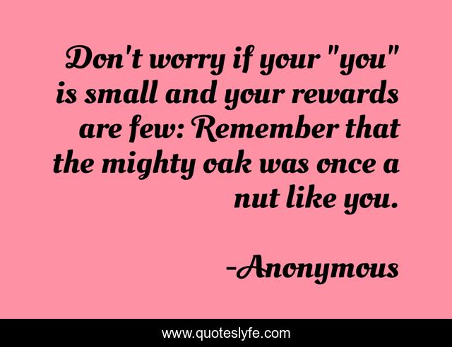 This page presents the quote "Don't worry if your "you" is small and your rewards are few: Remember that the mighty oak was once a nut like you.". Author of this quote is Anonymous. This quote is about yous, thank, closures,.