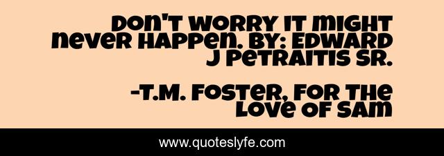 This page presents the quote "Don't worry it might never happen. By: Edward J Petraitis Sr.". Author of this quote is T.M. Foster, For The Love Of Sam. This quote is about action, love, suspense-romance, affection,.