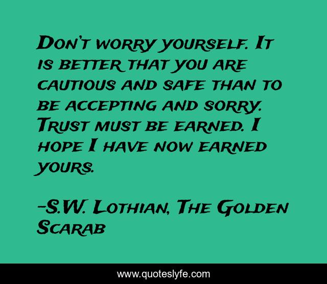 This page presents the quote "Don’t worry yourself. It is better that you are cautious and safe than to be accepting and sorry. Trust must be earned. I hope I have now earned yours.". Author of this quote is S.W. Lothian, The Golden Scarab. This quote is about action, fantasy, science-fiction-fantasy, adventure, middle-grade,.
