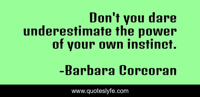 This page presents the quote "Don't you dare underestimate the power of your own instinct.". Author of this quote is Barbara Corcoran. This quote is about underestimate, dare,.