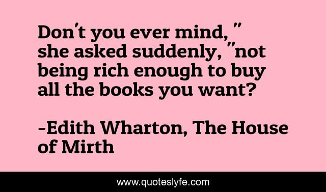 This page presents the quote "Don't you ever mind, " she asked suddenly, "not being rich enough to buy all the books you want?". Author of this quote is Edith Wharton, The House of Mirth. This quote is about money, books, rich,.
