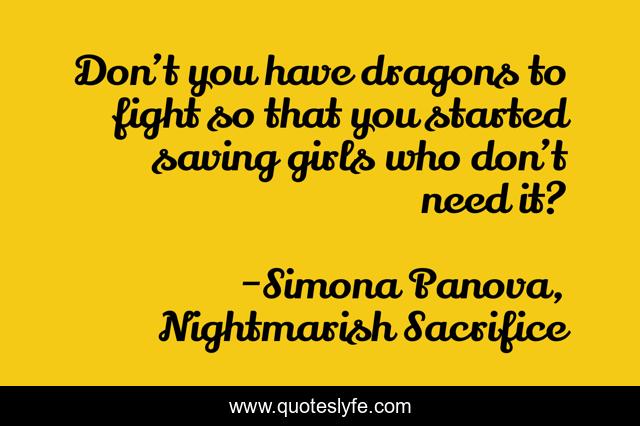 "Simona Panova, Nightmarish Sacrifice Quotes." Quoteslyfe.com, 2025. Mon. 08 Dec. 2025. <https://www.quoteslyfe.com/quote/Don-t-you-have-dragons-to-fight-120756>.