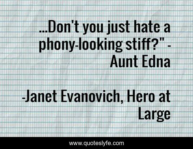 This page presents the quote "...Don't you just hate a phony-looking stiff?" - Aunt Edna". Author of this quote is Janet Evanovich, Hero at Large. This quote is about funny, comedy,.