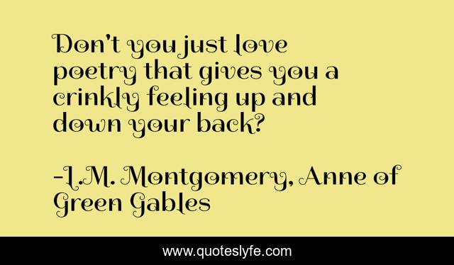 This page presents the quote "Don't you just love poetry that gives you a crinkly feeling up and down your back?". Author of this quote is L.M. Montgomery, Anne of Green Gables. This quote is about l-m-montgomery, poetry,.