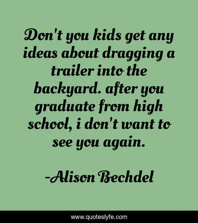 This page presents the quote "Don't you kids get any ideas about dragging a trailer into the backyard. after you graduate from high school, i don't want to see you again.". Author of this quote is Alison Bechdel. This quote is about kids, love, family, trailer, mother, affection,.