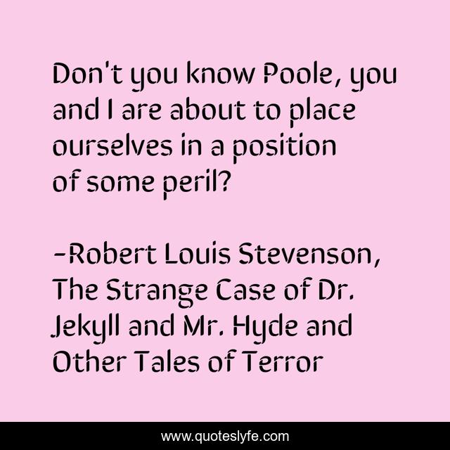 "Robert Louis Stevenson, The Strange Case of Dr. Jekyll and Mr. Hyde and Other Tales of Terror Quotes." Quoteslyfe.com, 2025. Sat. 06 Dec. 2025. <https://www.quoteslyfe.com/quote/Don-t-you-know-Poole-you-and-202954>.