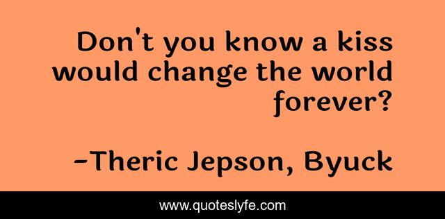 This page presents the quote "Don't you know a kiss would change the world forever?". Author of this quote is Theric Jepson, Byuck. This quote is about love, romance, marriage, kissing, friendship, affection,.