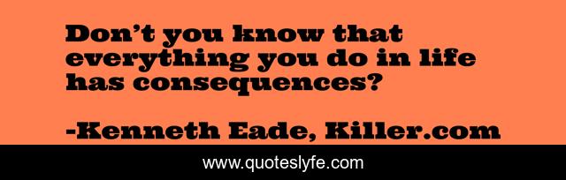 This page presents the quote "Don’t you know that everything you do in life has consequences?". Author of this quote is Kenneth Eade, Killer.com. This quote is about free-will, life, consequences, choices,.