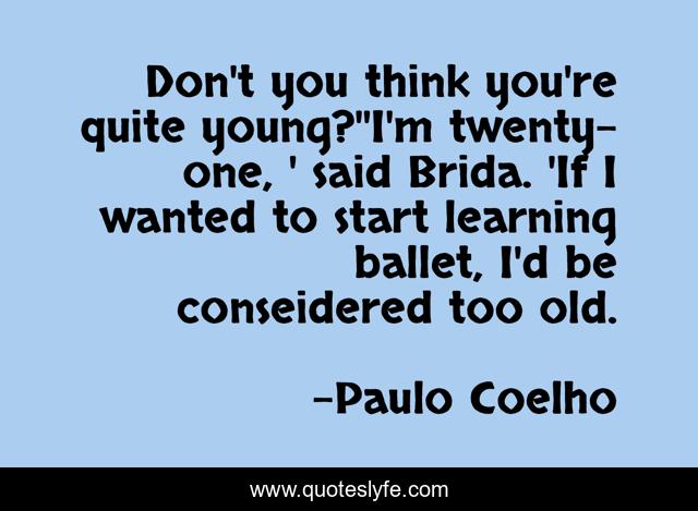 This page presents the quote "Don't you think you're quite young?''I'm twenty-one, ' said Brida. 'If I wanted to start learning ballet, I'd be conseidered too old.". Author of this quote is Paulo Coelho. This quote is about funny, comedy, brida, young,.