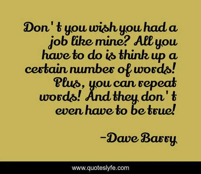 This page presents the quote "Don't you wish you had a job like mine? All you have to do is think up a certain number of words! Plus, you can repeat words! And they don't even have to be true!". Author of this quote is Dave Barry. This quote is about columnist, writing,.