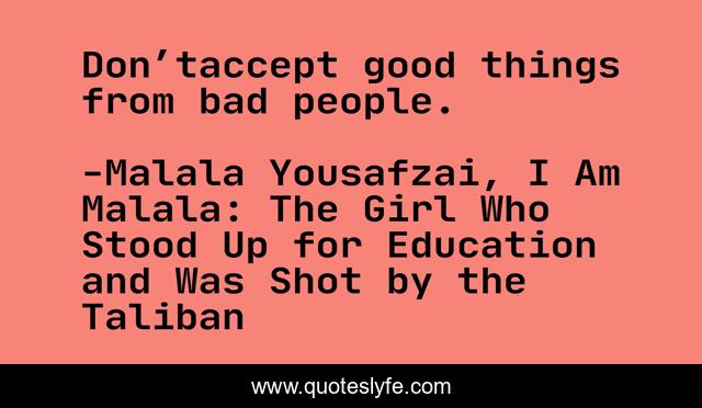 "Malala Yousafzai, I Am Malala: The Girl Who Stood Up for Education and Was Shot by the Taliban Quotes." Quoteslyfe.com, 2025. Fri. 05 Dec. 2025. <https://www.quoteslyfe.com/quote/Don-taccept-good-things-from-bad-people-221473>.