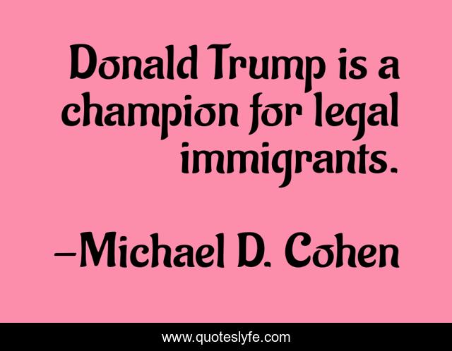 This page presents the quote "Donald Trump is a champion for legal immigrants.". Author of this quote is Michael D. Cohen. This quote is about immigrants, champion,.