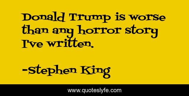 This page presents the quote "Donald Trump is worse than any horror story I've written.". Author of this quote is Stephen King. This quote is about america, horror, donald-trump, president, dead-zone, stephen-king, 2017, 2016,.