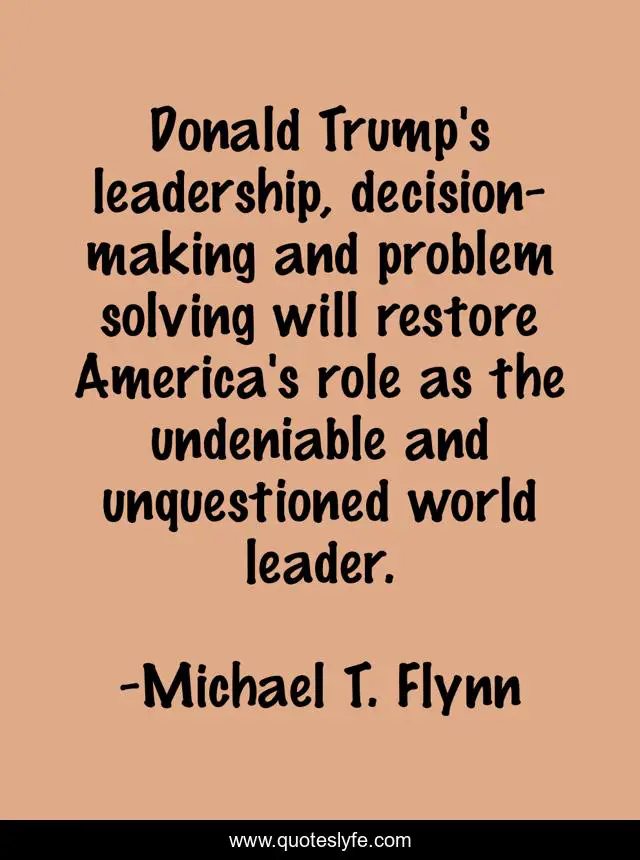 "Michael T. Flynn Quotes." Quoteslyfe.com, 2025. Sat. 06 Dec. 2025. <https://www.quoteslyfe.com/quote/Donald-Trump-s-leadership-decision-making-and-308637>.
