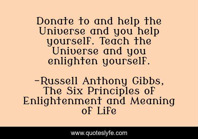 "Russell Anthony Gibbs, The Six Principles of Enlightenment and Meaning of Life Quotes." Quoteslyfe.com, 2025. Sun. 07 Dec. 2025. <https://www.quoteslyfe.com/quote/Donate-to-and-help-the-Universe-and-169755>.