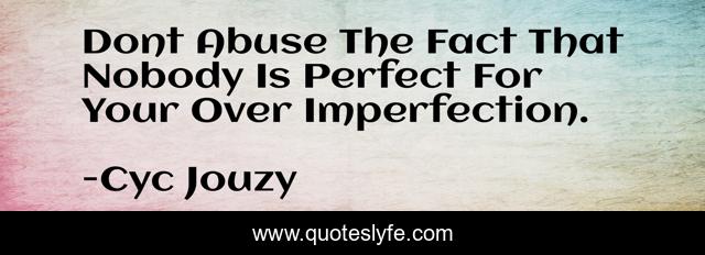 This page presents the quote "Dont Abuse The Fact That Nobody Is Perfect For Your Over Imperfection.". Author of this quote is Cyc Jouzy. This quote is about perfect, relationship, love, honesty, affection,.