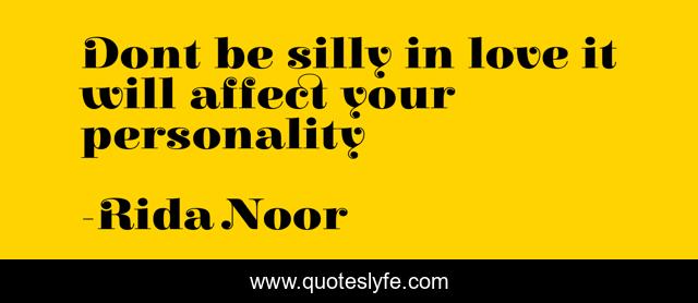 This page presents the quote "Dont be silly in love it will affect your personality". Author of this quote is Rida Noor. .