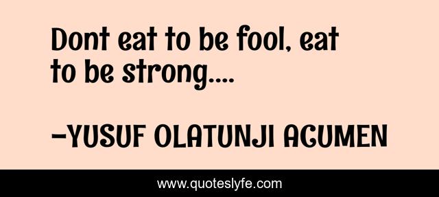 This page presents the quote "Dont eat to be fool, eat to be strong....". Author of this quote is YUSUF OLATUNJI ACUMEN. .