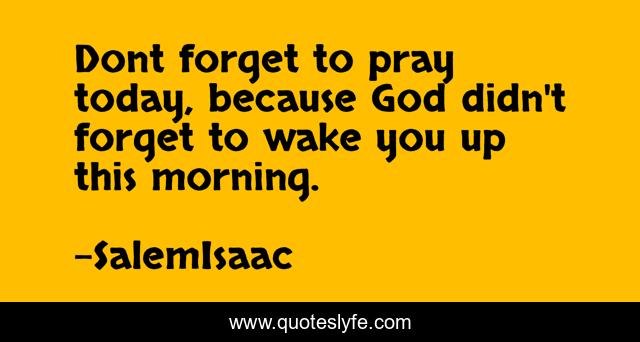 This page presents the quote "Dont forget to pray today, because God didn't forget to wake you up this morning.". Author of this quote is SalemIsaac. This quote is about god, life, quote, wisdom,.