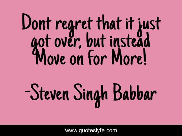 This page presents the quote "Dont regret that it just got over, but instead Move on for More!". Author of this quote is Steven Singh Babbar. This quote is about quotes, amazing,.