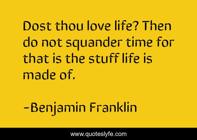 This page presents the quote "Dost thou love life? Then do not squander time for that is the stuff life is made of.". Author of this quote is Benjamin Franklin. .