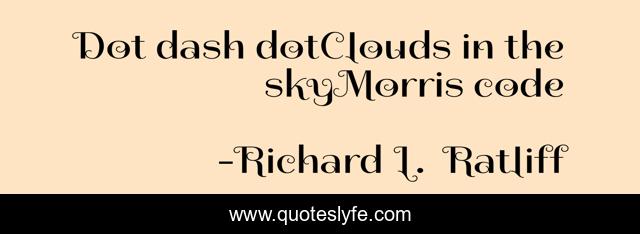 This page presents the quote "Dot dash dotClouds in the skyMorris code". Author of this quote is Richard L. Ratliff. This quote is about dash, clouds, sky, morris-code, dot,.