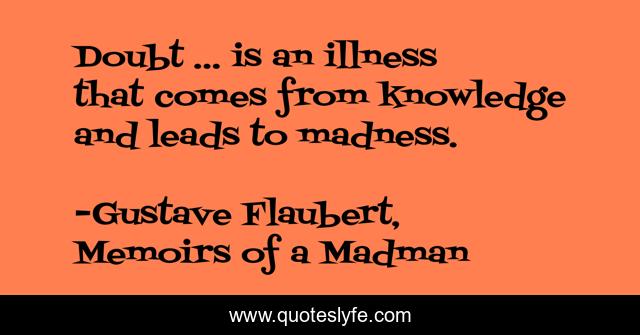 This page presents the quote "Doubt … is an illness that comes from knowledge and leads to madness.". Author of this quote is Gustave Flaubert, Memoirs of a Madman. This quote is about doubt, madness, knowledge,.