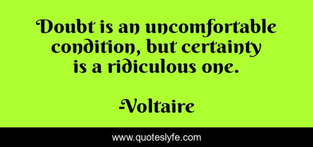 This page presents the quote "Doubt is an uncomfortable condition, but certainty is a ridiculous one.". Author of this quote is Voltaire. .