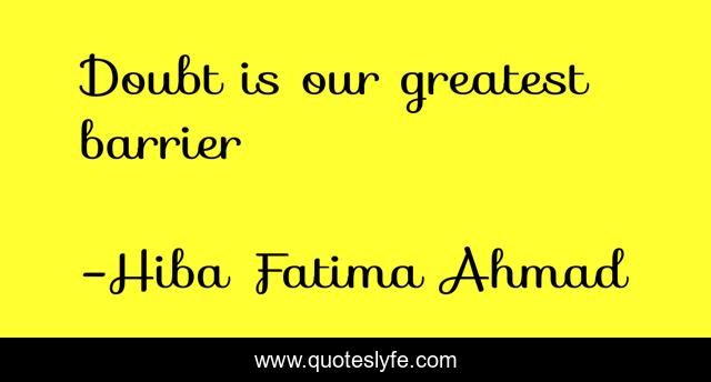 This page presents the quote "Doubt is our greatest barrier". Author of this quote is Hiba Fatima Ahmad. This quote is about barriers, doubt, hindering-our-full-potential,.