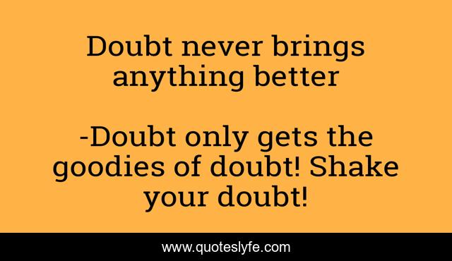 "Doubt only gets the goodies of doubt! Shake your doubt! Quotes." Quoteslyfe.com, 2025. Sat. 06 Dec. 2025. <https://www.quoteslyfe.com/quote/Doubt-never-brings-anything-better-180931>.