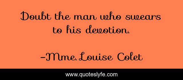 This page presents the quote "Doubt the man who swears to his devotion.". Author of this quote is Mme. Louise Colet. .