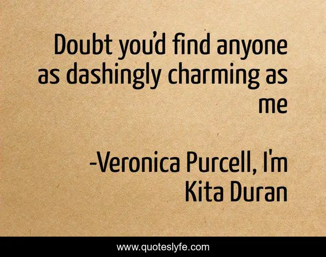 This page presents the quote "Doubt you’d find anyone as dashingly charming as me". Author of this quote is Veronica Purcell, I'm Kita Duran. This quote is about novel, sarcastic-humor,.