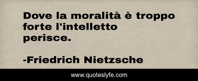 This page presents the quote "Dove la moralità è troppo forte l'intelletto perisce.". Author of this quote is Friedrich Nietzsche. This quote is about philosophy, morality,.