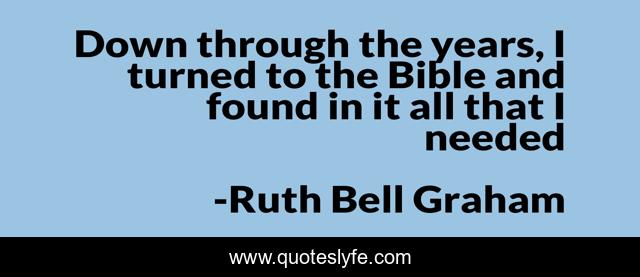 This page presents the quote "Down through the years, I turned to the Bible and found in it all that I needed". Author of this quote is Ruth Bell Graham. .